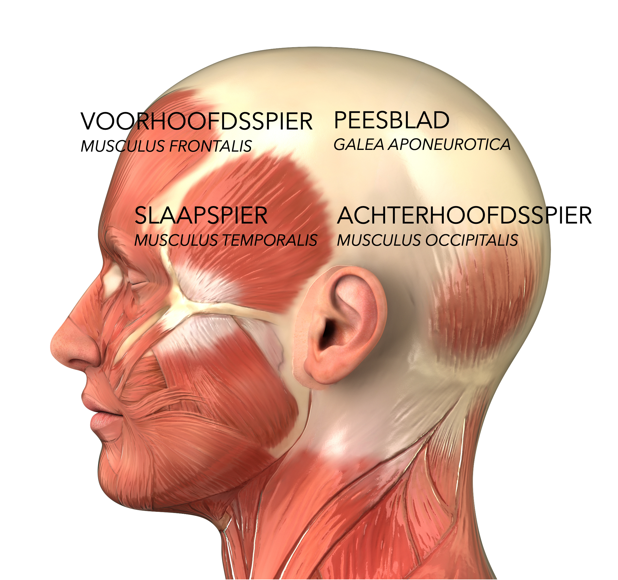 Onder de hoofdhuid ligt een stevig bindweefselvlies (peesblad) dat de voorhoofds- en achterhoofdsspieren met elkaar verbindt. Naarmate we ouder worden en doordat de schedel tot je 21ste doorgroeit, komt dit peesblad onder spanning te staan. Die spanning is het grootst bij de inhammen en de kruin, waar de kleine bloedvaatjes die de haarzakjes voeden worden dichtgedrukt. Hierdoor krijgen ze minder voeding, waardoor ze gevoeliger worden voor DHT.