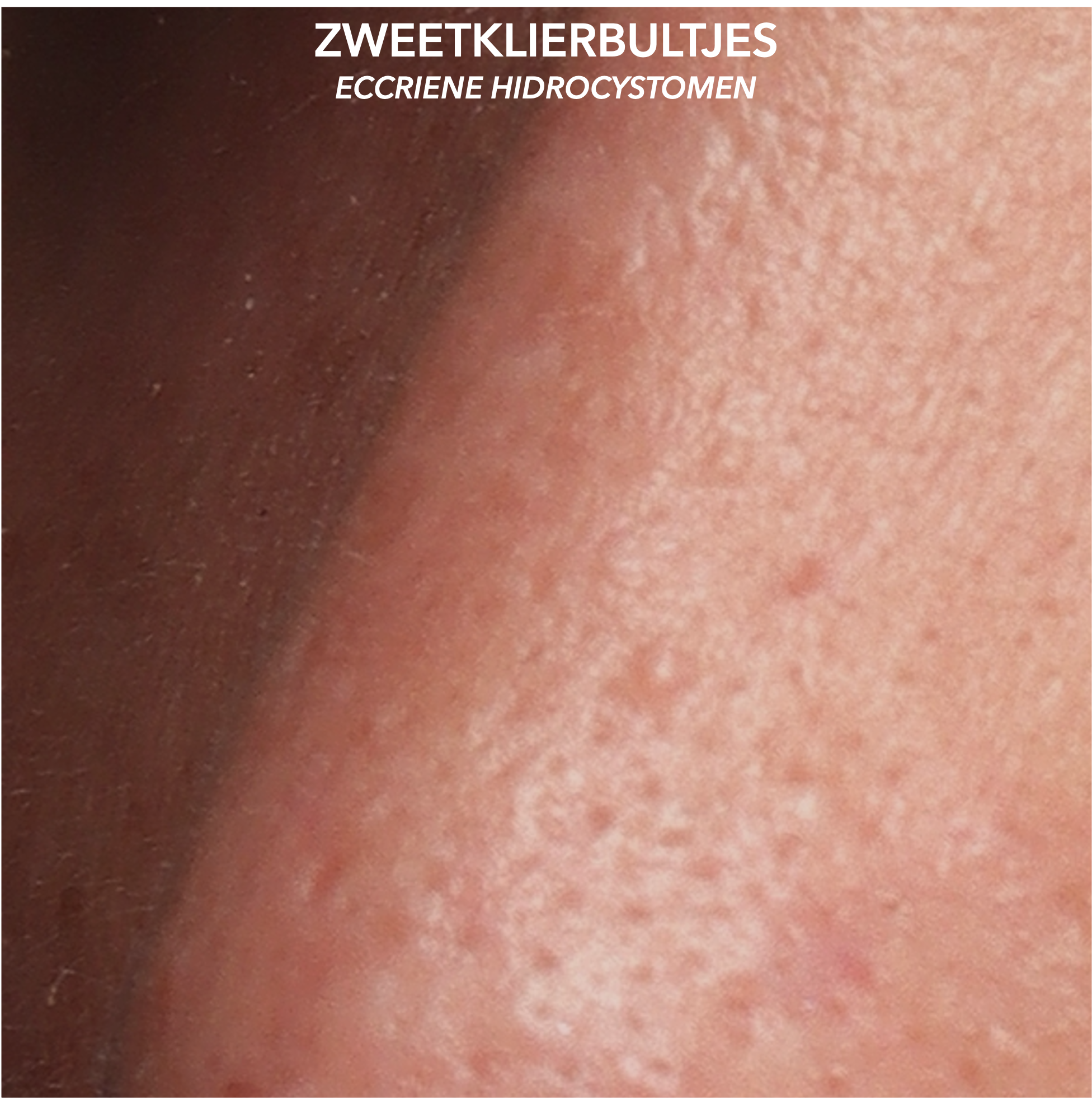 - Syringoom (kleine, goedaardige bultjes die ontstaan uit zweetklieren)